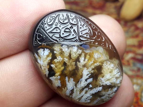 انگشتر عقیق شجر خطی وزن 19.3 گرم