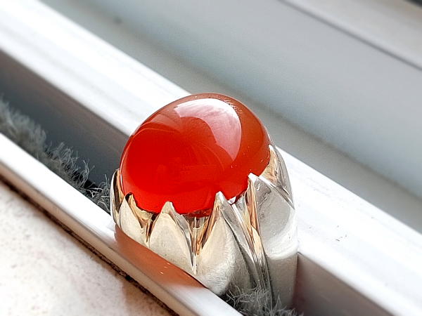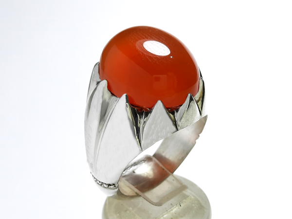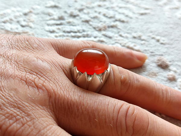 سنگ نگین عقیق یمن اصل طبیعی به رنگ پرتقالی با تراش دامله به طول 19.5 و عرض 16.5 میلیمتر