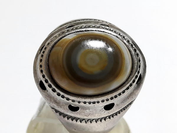 سنگ نگین عقیق سلیمانی کهنه اصل طبیعی با تراش دامله به طول 15.4 و عرض 12.6 میلیمتر