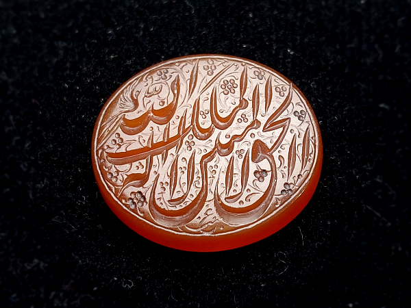 متن روی نگین: لا اله الملک الحق المبین