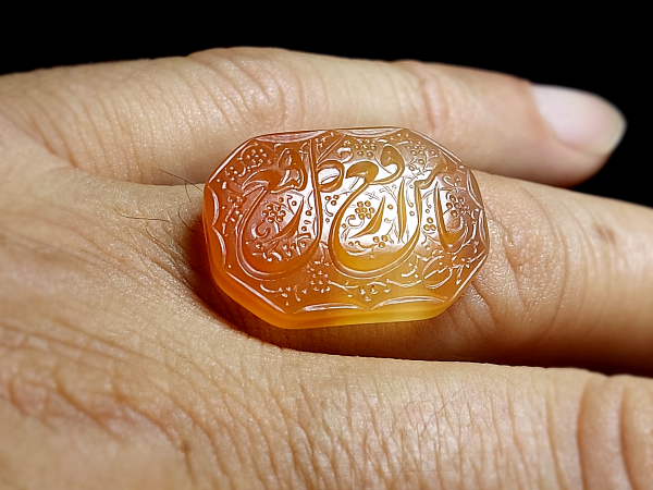 سنگ عقیق طبیعی با حکاکی دستی به طول 16.5 و عرض 13.5 میلیمتر