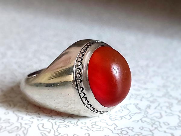 انگشتر مردانه عقیق سنگ نگین عقیق یمن اصل طبیعی به رنگ پرتقالی با تراش دامله به طول 19.5 و عرض 16.5 میلیمتر رکاب نقره دست ساز سایز 63.5 - 64.5…
